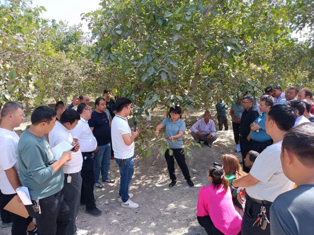服务团队提前收集种植户需求,在阿瓦提县政府及林业与草原局的支持和协调下,对拜什艾日克镇核桃示范园、新建杏园、葡萄园开展了现场调研。并针对核桃秋季有机肥深埋、肥水科学管理、树体管理、病虫害防治等开展了现场讲座和动手示范,解答了少数民族种植户提出的生产问题。现场培训结束后,科技服务团队成员和林业与草原局局长艾孜孜·吾斯曼针对该县林果业产业发展、老果园提质增效、快速推进“乡村振兴”等方面进行了交流。