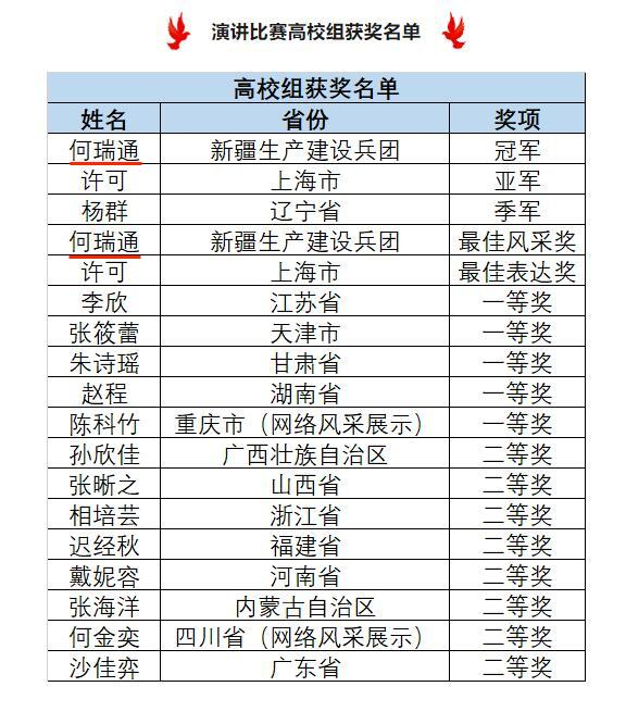 主题演讲环节,何瑞通以学校科技服务团队为切入点,阐述了宪法和乡村振兴促进法赋予高等学校开展农业技术推广服务的光荣使命。命题演讲环节,何瑞通以“人类命运共同体”和“积极应对气候变化,共同保护地球家园”为主题,用新疆达坂城风谷故事和“一带一路”倡议,分析了宪法对“国家保护和改善生态环境,防治污染”的规定。立意高远,视角新颖,语言风格故事化,展现了扎实的理论功底和高超的演讲水平。