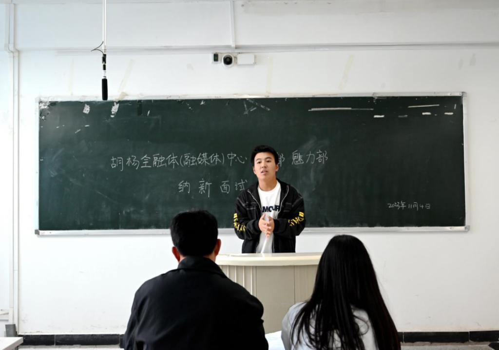 为充实壮大新闻工作队伍,优化胡杨•全媒体(融媒体)中心记者队伍,11月4日下午,胡杨·全媒体(融媒体)中心在综合楼阶教3、阶教4、214等教室开展纳新考试。胡杨•全媒体(融媒体)中心副部长以上学生记者担任监考,全校100余名学生参加考试。