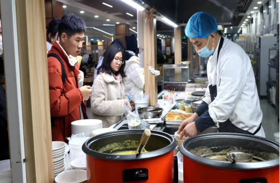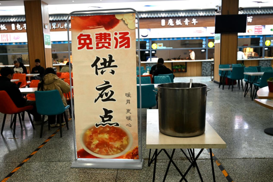 在寒冷的冬日,食堂也为大家准备了热乎的“免费汤”