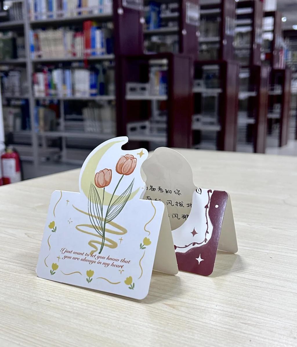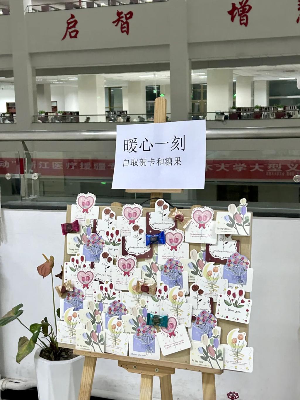有一位拿到贺卡的学姐说:“马上就要考研了,心里压力很大,早上一醒就到图书馆学习了,没想到来了之后收到了意外的惊喜,谢谢学校对学生的关心与鼓励”