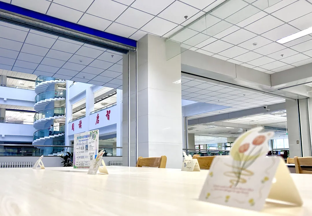 志愿者在图书馆每张桌子上都摆上了祝福贺卡,希望来图书馆备考的塔大学子在看到贺卡后能受到激励并感觉到温暖。