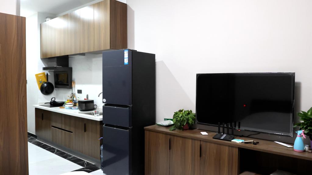 “看,电视、冰箱、洗衣机、热水器,这里什么都有,连炊具厨具都为我们准备好了,住在这里我感到很幸福!”化学与化工学院新入职教师王雪娇开心地说。
