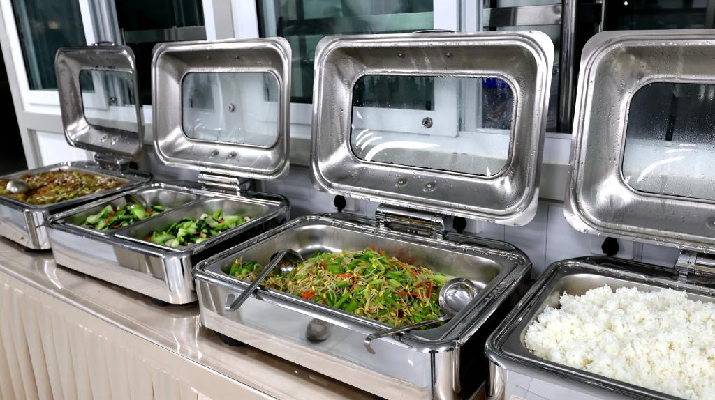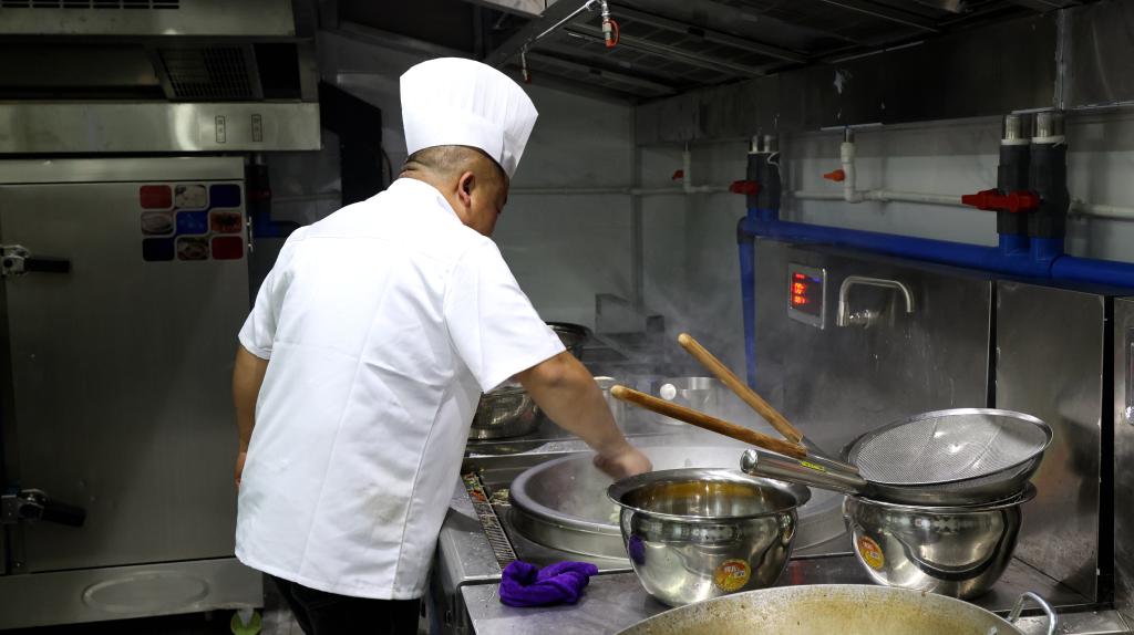 菜香扑鼻,笑声阵阵。塔大家园食堂内,不少老师边吃边聊,好不热闹,食堂内整洁明亮,餐品区内刚刚出锅的热气腾腾的饭菜有序陈列,散发着诱人的香气。