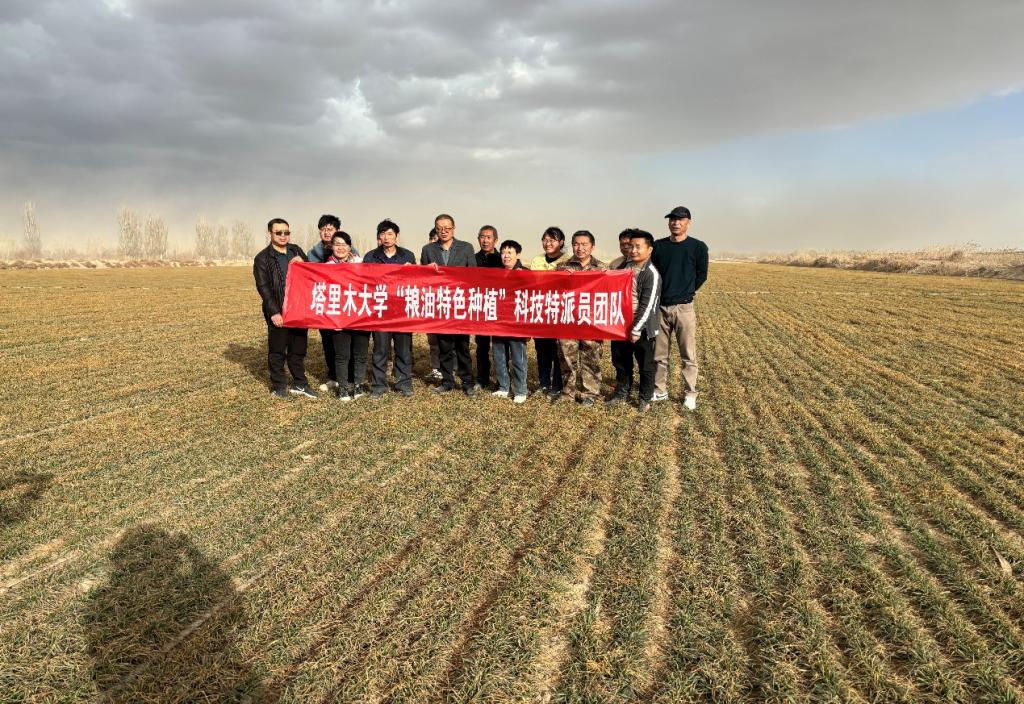 在和硕县冬小麦地里,团队为种植户详细讲解冬小麦的栽培管理技术,为种植户支招。
