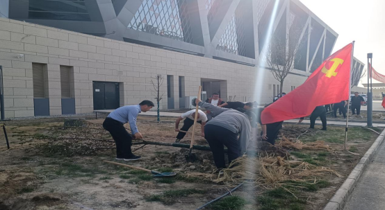 4月9日下午,后勤保障中心党总支组织党员干部和“三进两联一交友”学生来到体育馆,举行“植一棵树,添一抹绿,共建共享绿色美丽校园”2024年春季植树活动。