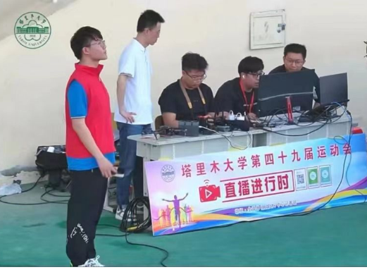 他们是胡杨·全媒体(融媒体)中心直播组的记者们。选好点位,调试设备,“空、地”机位联动直播技术,呈现校运会的璀璨盛景。无人机航拍,俯瞰校园,将运动场上每一份激情与汗水尽收眼底;地面直播,近距离感受选手的飒爽英姿与比赛的激烈角逐。这不仅是一场运动的盛会,更是一次科技与体育的完美融合,让线上的观众身临其境,共同见证校运会的精彩。