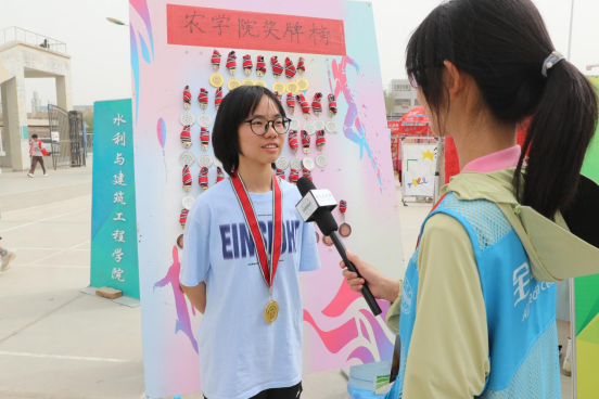 男子4×400米接力冠军代表、水利与建筑工程学院农业水利工程2022级2班赵德森说:“从大一开始,我就加入了水建院田径队,历经选拔、培训,终于进入校队。在备赛期间,教练不仅在训练过程中指导我,也在生活上为我排忧解难。家人与队友的鼓励,如同坚实的后盾,让我在紧张备战中始终保持信心。我将继续奋斗拼搏,不断突破自我。”