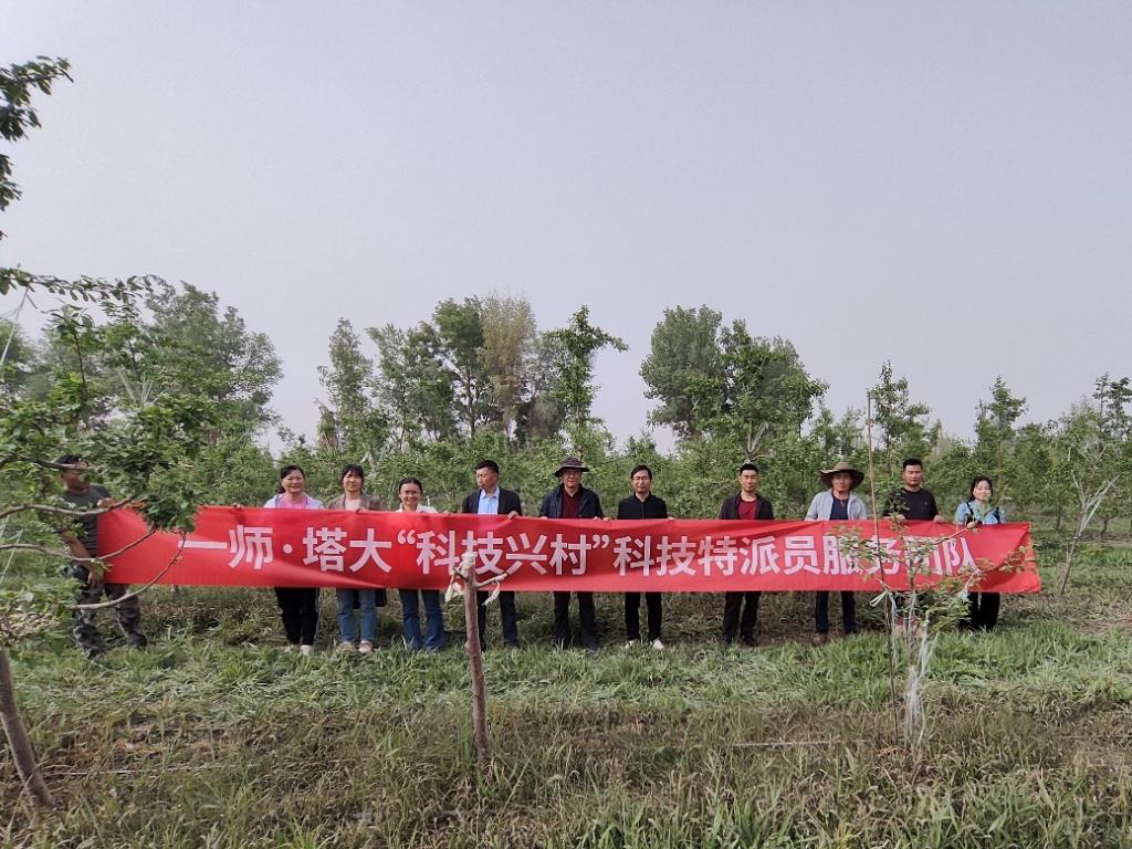 4月29日,beat365中文登录入口环塔电商科技特派员团队韩清华、林皎副教授邀请园艺与林学学院王新建教授、一师农科所专家邵延慧助理研究员和陈玲农艺师赴一师9团23连开展杏树种植技术服务。
