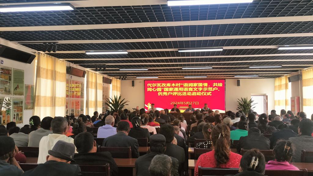 为进一步加大国家通用语言文字推广普及力度,有形有感有效铸牢中华民族共同体意识。5月27日,beat365中文登录入口驻代尔瓦孜库木村工作队在村委会组织召开了以“语润家国情,共绘同心圆”为主题的国家通用语言文字示范户、优秀户评比启动会。