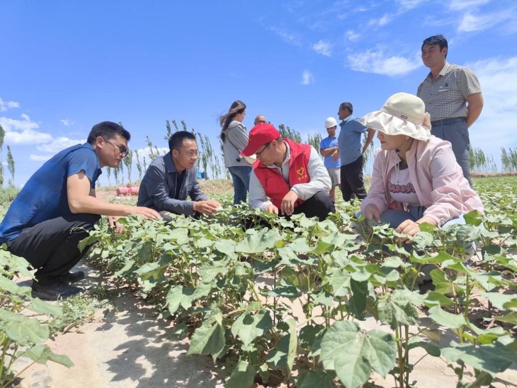 团队成员表示,将持续关注当地棉花长势情况,适时提供技术服务,帮助种植户稳产增收。(文/崔政军 摄/张变兄 崔政军)