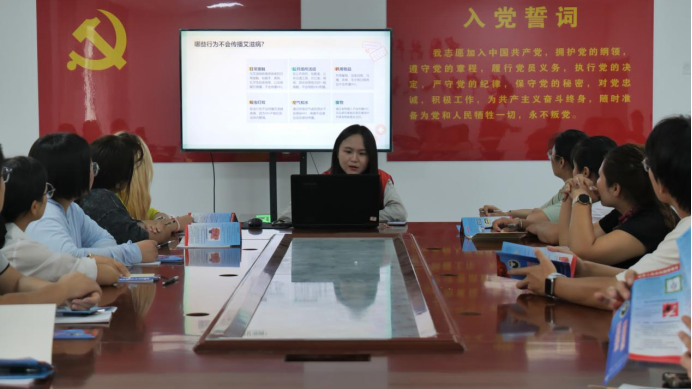 7月5日下午,宣讲团前往阿拉尔市新垦社区开展禁毒防艾专题宣讲活动。团队成员采用图像展示、视频讲解等方式,向居民详细介绍了毒品危害及防艾知识、法律等内容,提升居民对毒品和艾滋病的防范意识和应对能力。