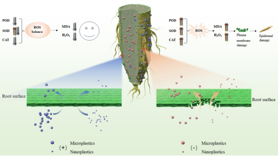 论文中重新定义了纳米塑料和微塑料的尺寸界限,并打破了这一领域的常规认知,揭示了纳/微塑料表面电性对高等植物吸收纳/微塑料过程中起到的重要作用,有助于了解植物吸收微塑料的主要方式与过程,研究结果可为微塑料与植物间的互相作用机理提供新的见解,能为作物生长科学管理提供帮助。