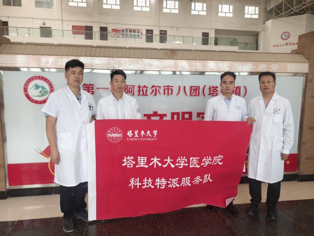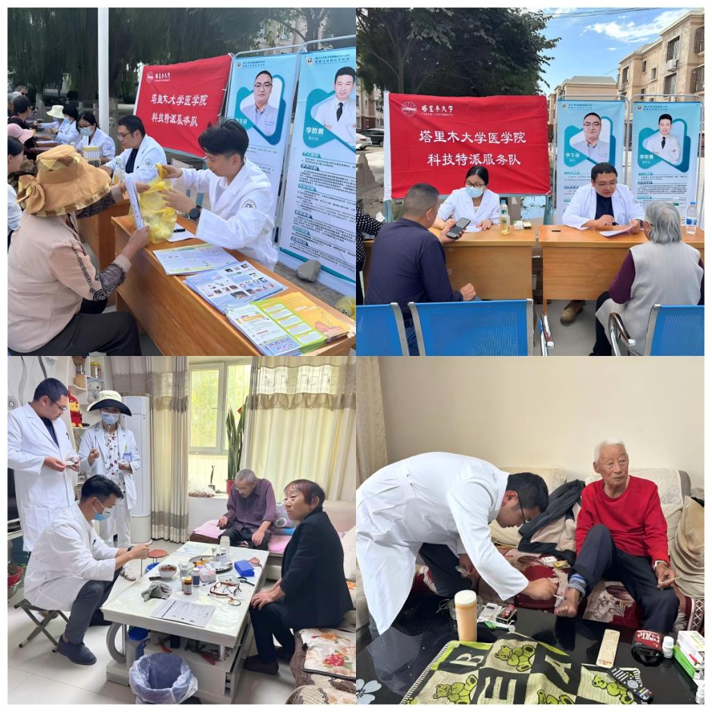 近日,beat365医学院科技特派服务队李哲勇、孙立稳、李鹏飞、关闯4位教师与浙大邵逸夫阿拉尔医院医生、护士前往一师八团、五团,为当地居民开展医疗义诊活动。