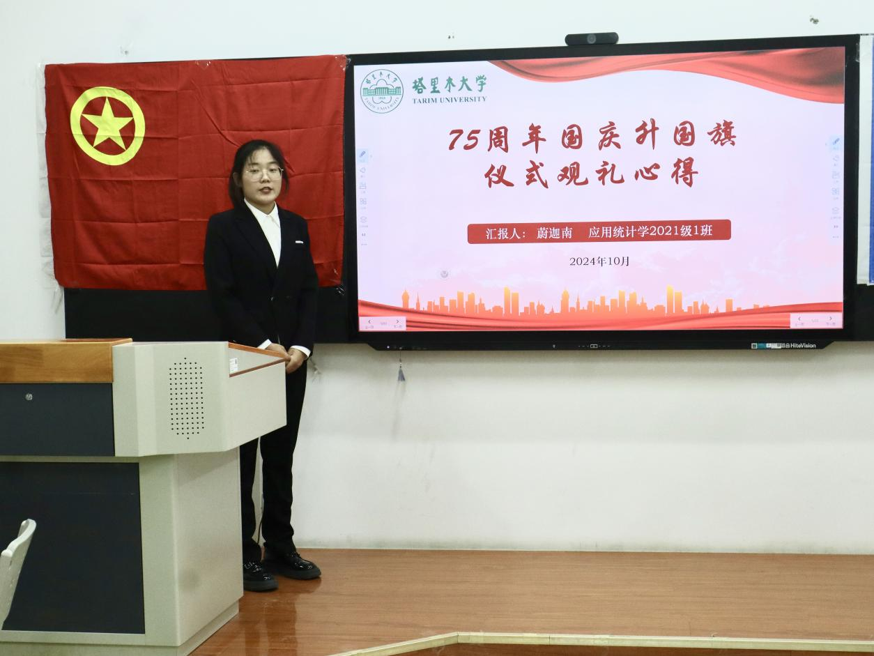通过深情的描述、激情的诉说、动情的表达,在场师生身临其境感受到了这份爱国情的澎湃传递,仿佛与百名师生一同站在北京天安门广场,共同升起这面鲜艳的五星红旗。师生们积极发言,畅谈个人感悟与未来展望。“作为青年,我们肩负着国家的未来与希望。我们要高举中国特色社会主义伟大旗帜,坚定理想信念,努力成长锻炼,投身边疆建设,把青春绽放在祖国最需要的地方。”应用统计学2021级1班团支书张力感慨道。