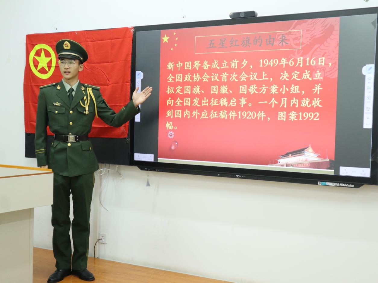 分享会上,学院还邀请了校国旗护卫队成员全面讲解《中华人民共和国国旗法》,加深了大家对爱旗护旗的责任感和荣誉感。师生们还共同朗诵了《国旗颂》,用诗歌的形式表达对祖国的热爱与祝福。