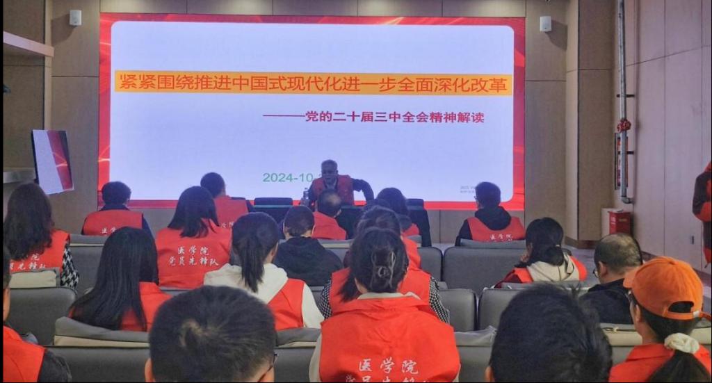 谢建新以《紧紧围绕推进中国式现代化 进一步全面深化改革》为题,围绕学习宣传贯彻党的二十届三中全会精神,结合学院实际和学习心得,开展专题党课辅导。