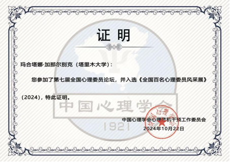 近日,由中国心理学会心理危机干预工作委员会举办的第十九届全国高校心理委员工作研讨会暨朋辈辅导论坛在北京大学圆满落幕。beat365推荐的机械电气化工程学院2022级心理委员周玉婷(指导老师:王佳豪)、人文学院2023级心理委员玛合塔娜·加那尔别克(指导老师:艾力海木·艾尼瓦尔)工作事迹入选《全国百名心理委员风采》著作。