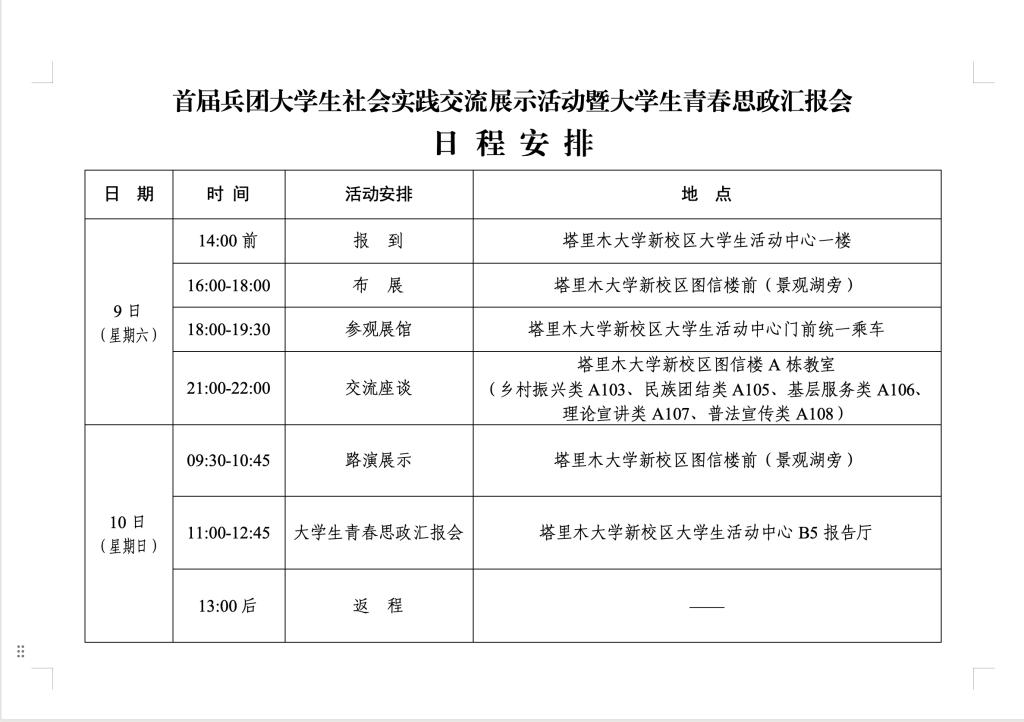 预告|首届兵团大学生社会实践交流展示活动暨大学生青春思政汇报会