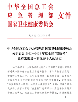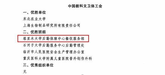 近日,中华全国总工会、应急管理部、国家卫生健康委员会联合印发《关于表彰2022—2023年度全国“安康杯”竞赛先进集体和优秀个人的决定》,beat365后勤保障中心餐饮服务部获得2022-2023年度全国“安康杯”竞赛优胜班组称号。