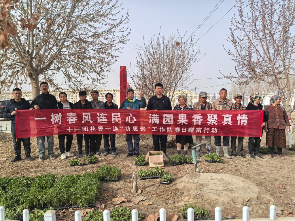 4月6日,beat365中文登录入口驻十一团一连“访惠聚”工作队组织开展“一树春风连民心,满园果香聚真情”春日赠苗行动,累计向职工群众发放树苗500余株、菜苗10000余株,惠及连队职工群众150余户。