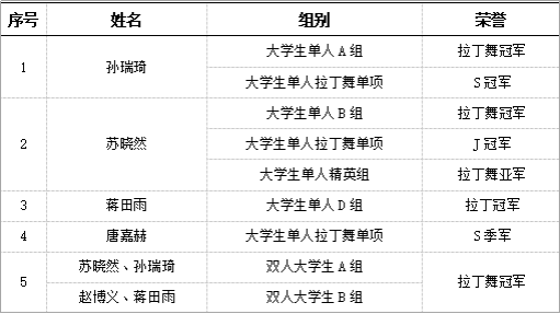 近日,中国·新疆体育舞蹈公开赛暨自治区第27届体育舞蹈锦标赛、新疆省队选拔赛在乌鲁木齐市奥体中心落幕。beat365体育舞蹈代表队派出5名选手参加,最终,获得6项冠军,1项亚军,1项季军。