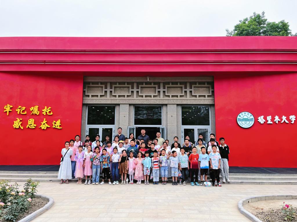 中小学生来到“牢记嘱托·感恩奋进”主题展览馆,耐心聆听讲解员娓娓道来的讲述,了解学校“住地窝子、喝盐碱水”的艰难岁月,感悟学校培养数万名胡杨英才的光辉历程。一代代塔大人扎根边疆、建设边疆的奋斗故事令大家肃然起敬,也让大家近距离感受到高校深厚的历史文化底蕴。
