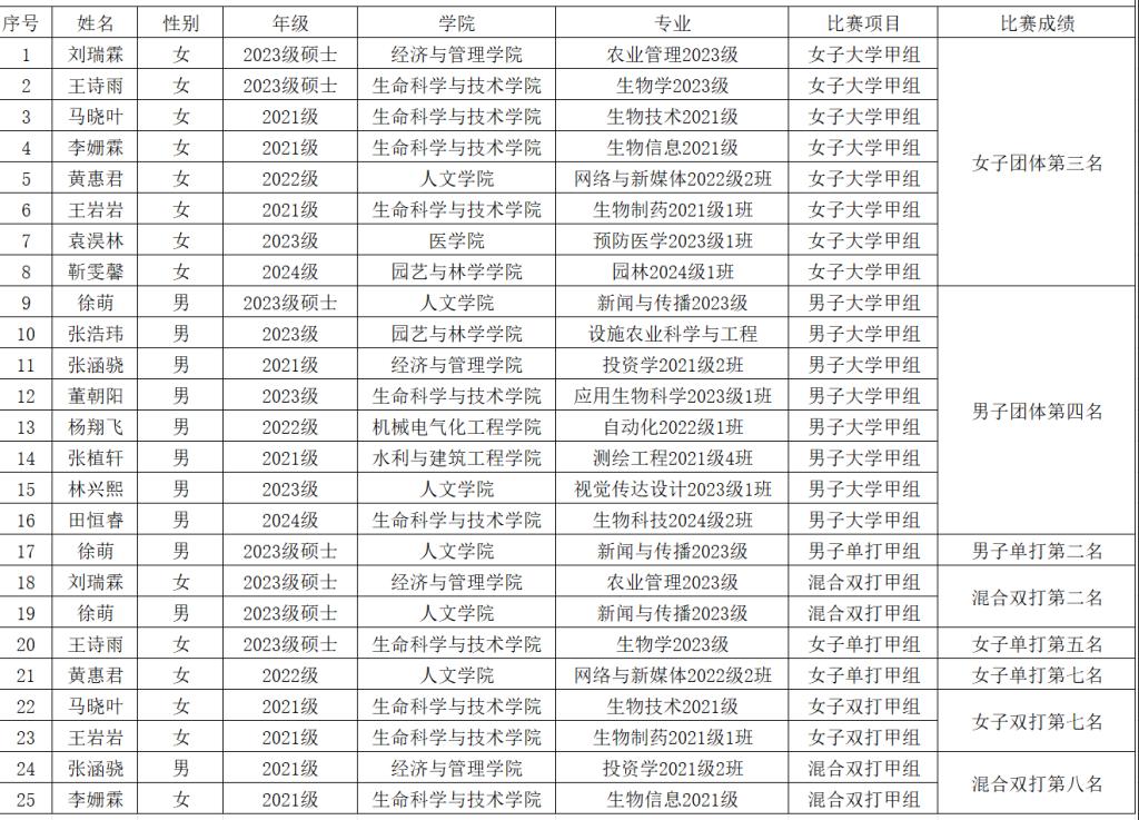 近日,2025年自治区第二届大学生校园羽毛球联赛在石河子大学举办。beat365羽毛球代表队获得男子单打亚军、混合双打亚军,女子甲组团体第三名,男子甲组团体第四名。经济与管理学院学生刘瑞霖被评为“优秀运动员”,体育工作部教师殷培红被评为“优秀教练员”。