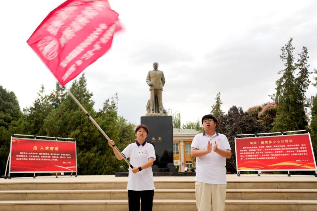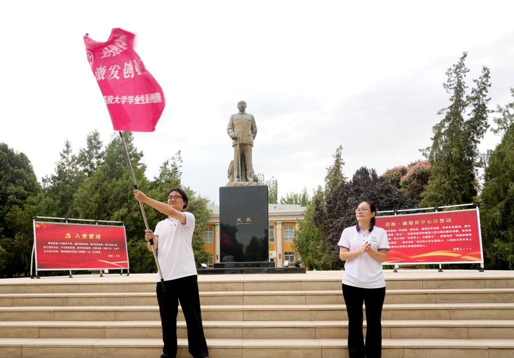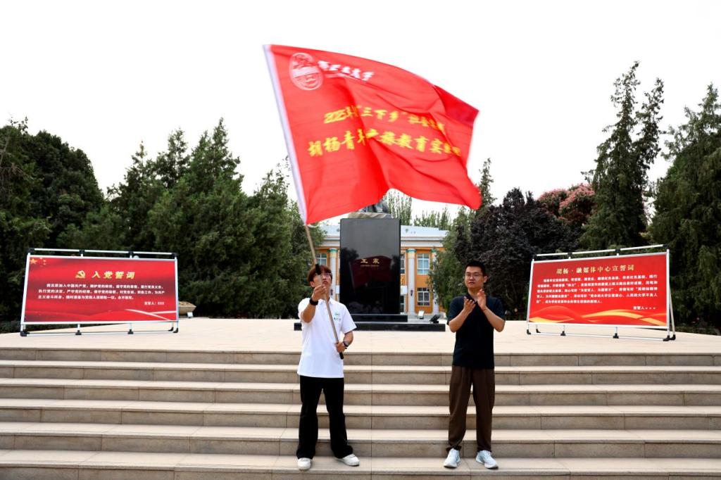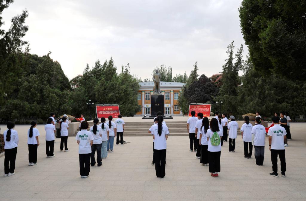 7月4日,beat365中文登录入口胡杨·融媒体中心在红色文化广场王震将军铜像前,举行2025年暑期“三下乡”社会实践活动出征仪式。