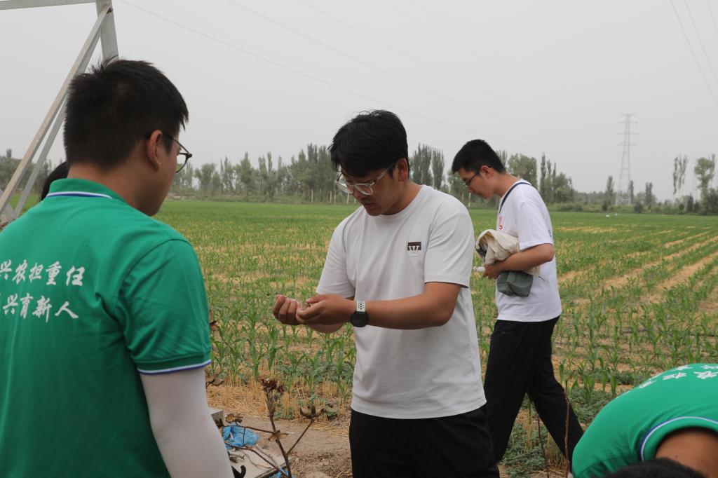 实践团队走进第一师十团的田间地头,实地查看了解棉花、玉米等粮棉作物的优质高效生产情况。从播种、田间管理到收获,从病虫害防控到机械化应用,大家详细记录,虚心求教,对“藏粮于地、藏粮于技”的基层实践有了深入体悟。