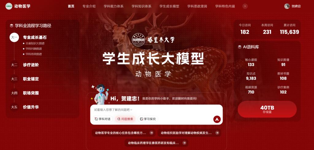 目前,动物医学学科大模型可针对动物医学专业问题及兽医职业相关内容开展人机对话,助力学生模拟临床问诊、手术方案设计等实践场景。此外,借助“诊疗要点”“医患关系”“执业兽医考试助手”三个智能体,有效辅助学生掌握诊疗核心技能、提升沟通能力。