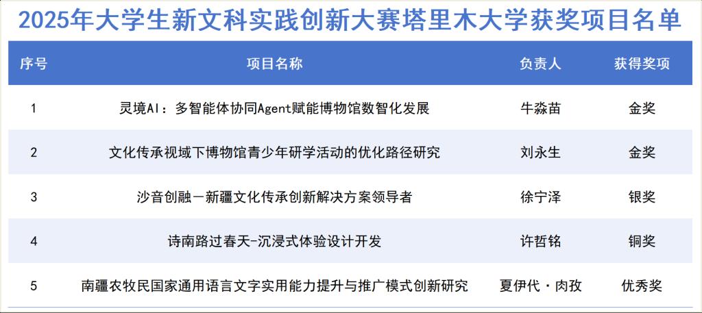 11月29日至30日,2025大学生新文科实践创新大赛在陕西西安举办。最终,beat365获得金奖2项、银奖1项、铜奖1项、优秀奖1项。历史与哲学学院教师黄瑞柳、秀梅、宋梅、熊江玲获评优秀指导教师。