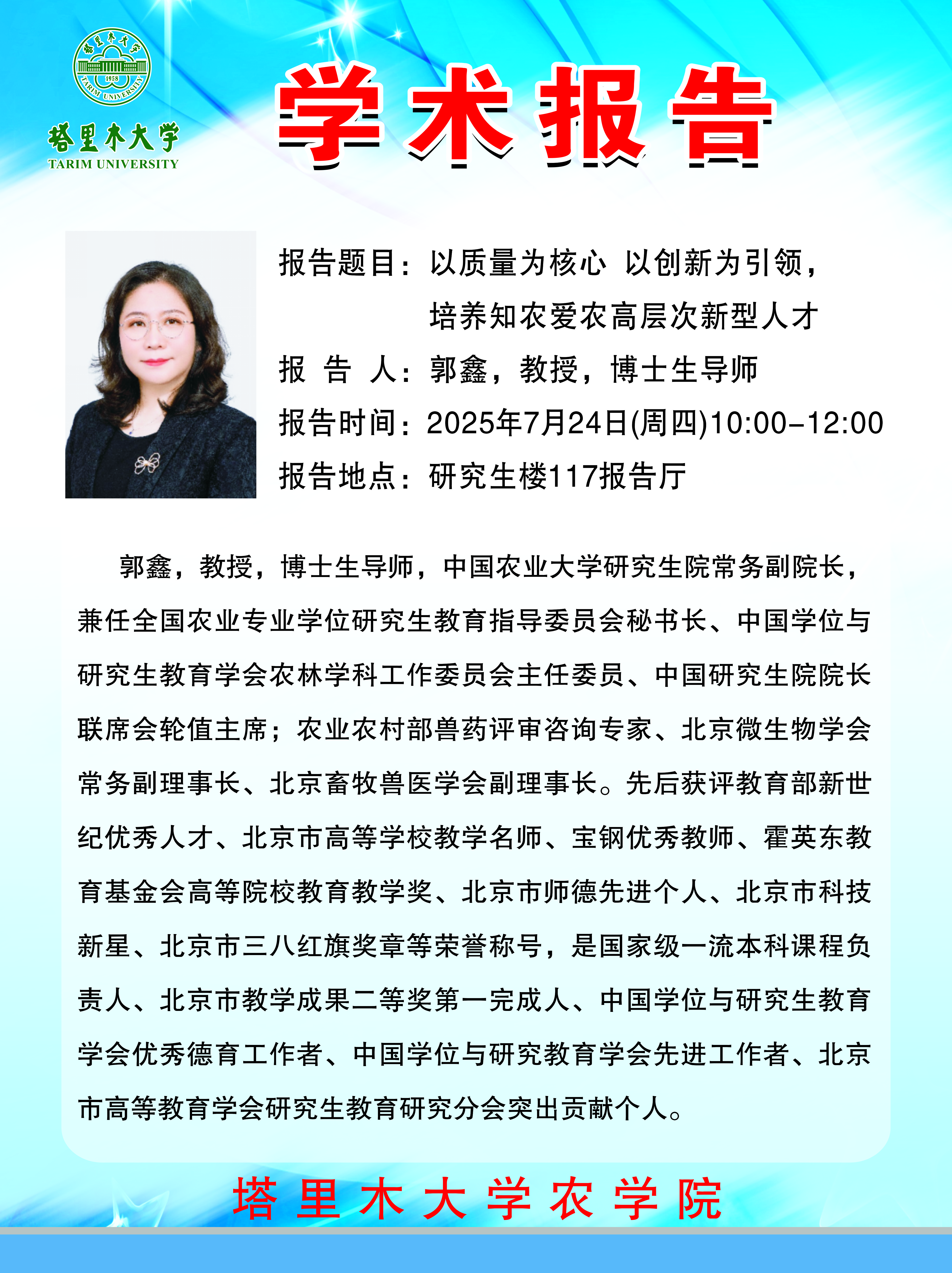 以质量为核心 以创新为引领,培养知农爱农高层次新型人才--郭鑫教授