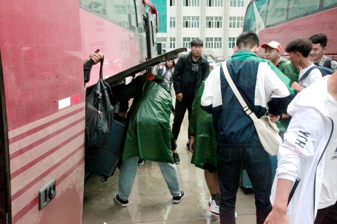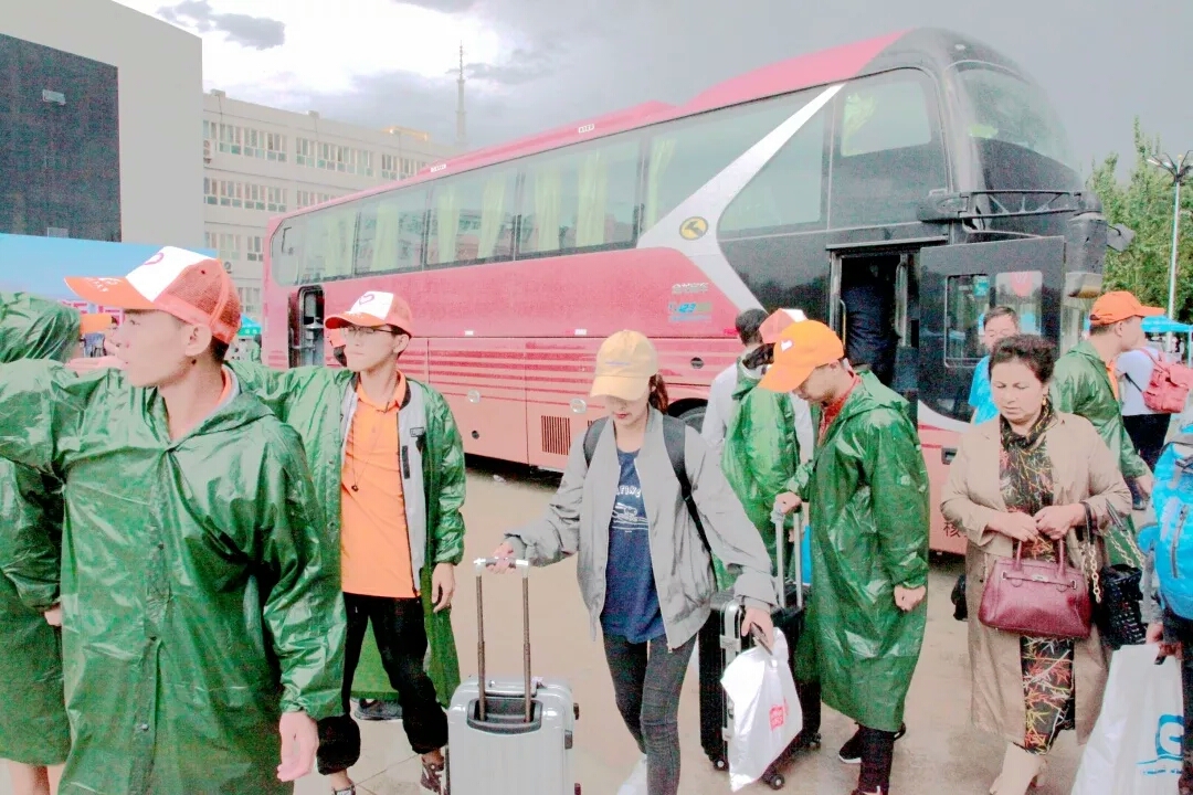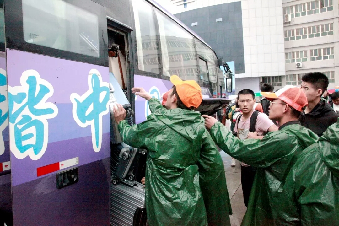 连绵的雨阻挡不了志愿者们的热情,他们冒着大雨迎接着到来的新生,为他们搬运行李,指引道路,安排报到的一切事宜。