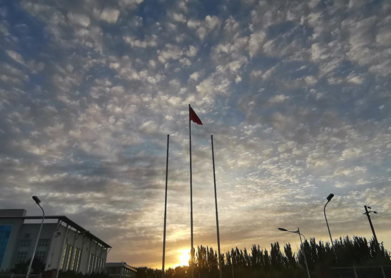 天未亮,全校师生齐聚西区操场,在国歌声中,迎着东方的第一缕朝阳,凝望国旗冉冉升起。这一刻,庄严肃穆,这一刻,激动人心,全场师生怀着无比激动的心情高唱国歌。军乐团激昂的伴奏,国旗护卫队整齐划一的步伐踏着鼓点,一步,一步,仿若踏在人的心脏,震撼人心。伴随着国歌冉冉升起的,不仅是国旗,还有全国人民对家国未来的希望,地平线撒下的第一缕朝阳,更是中国人民在中国共产党的带领下,不忘初心,牢记使命,挣破重重阻挠,实现中华民族伟大复兴的真实写照!