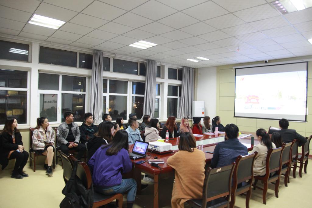 11月1日晚,人文学院院领导、师生党员在1号教学楼410室集中收看兵团卫视栏目脱贫路上的科技力量。