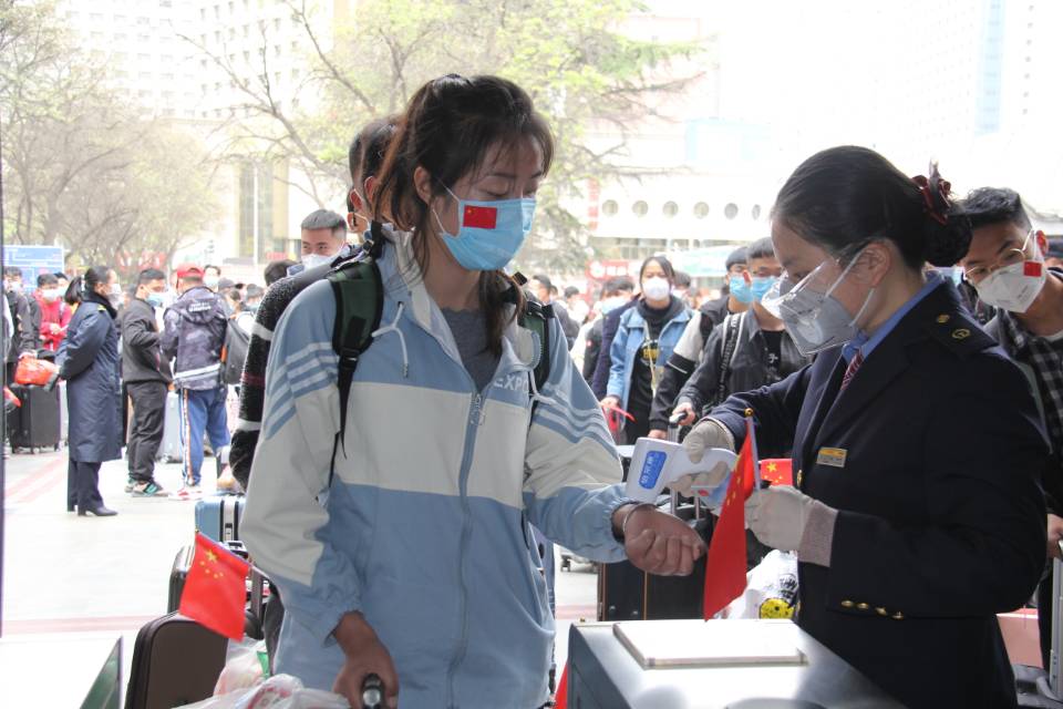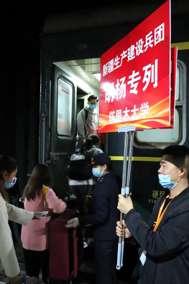 兵团胡杨专列驻兰州站工作组组长谷建杰说,“工作组和兰州铁路局进行无缝对接,做了大量准备工作,我们一定要把同学们健康安全送回学校。”(文/杨宝仁 摄/赵澳)