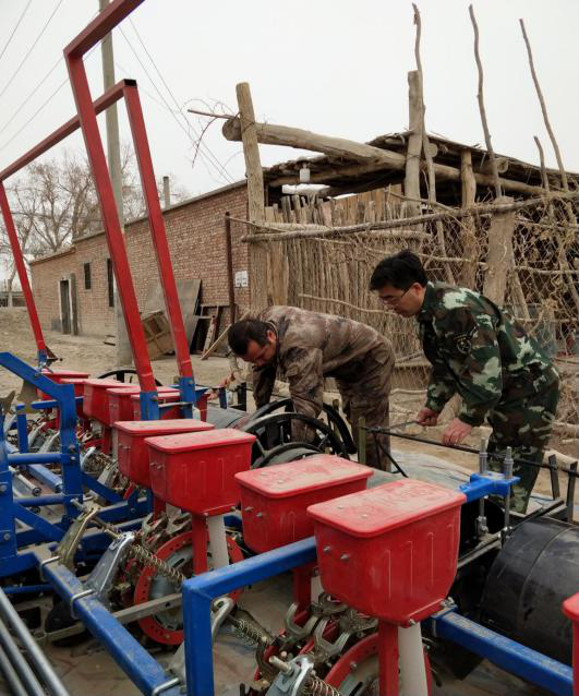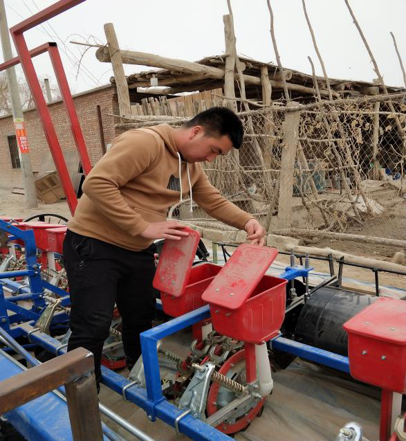 beat365中文登录入口驻十一团七连“访惠聚”工作队科技特派员团队,一手抓疫情,一手抓农业生产,开展送科技、送科学、送肥料等科技服务,助力职工群众增产增收。3月13日,工作队队长杨保求带领科技特派员团队成员及工作队队员,来到七连职工杨德亮的家里,了解春耕春播的准备情况,协助维修调整播种机和犁地机等机械。