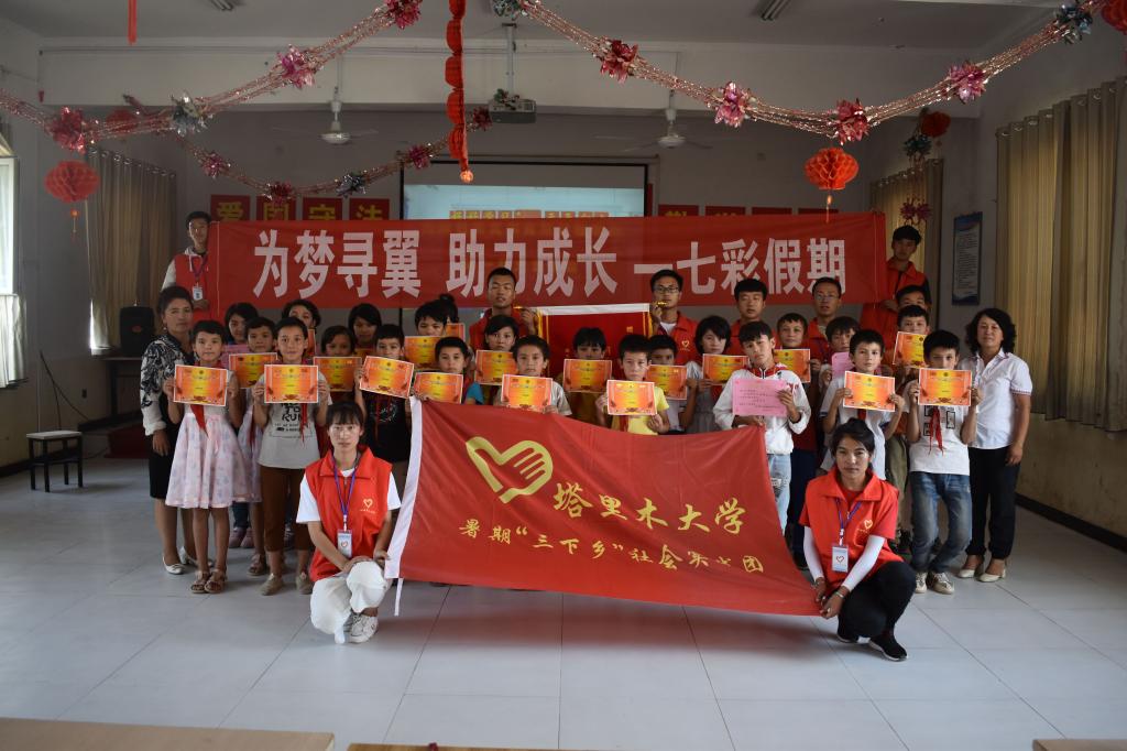 2019年,在学校党委的坚强领导下,在机关各部门、各学院的大力支持下,校团委扎实推动实践育人落细落实,积极动员广大团员青年参与农村留守儿童关爱保护工作,结合暑期“三下乡”社会实践,组建教育关爱服务团、志愿者服务队,深入喀什、和田、阿克苏、克州等南疆贫困地区、团场连队、乡村街道,围绕爱党爱国、感恩亲孝、传统文化、心理健康、安全自护、科技创新、学业辅导、亲情陪伴、素质拓展等内容,开展国语支教及“扶志扶智”志愿服务,帮助农村留守儿童和随迁子女度过快乐的假期,助力精准脱贫,为推进南疆社会稳定发展贡献塔大学子的智慧和力量。