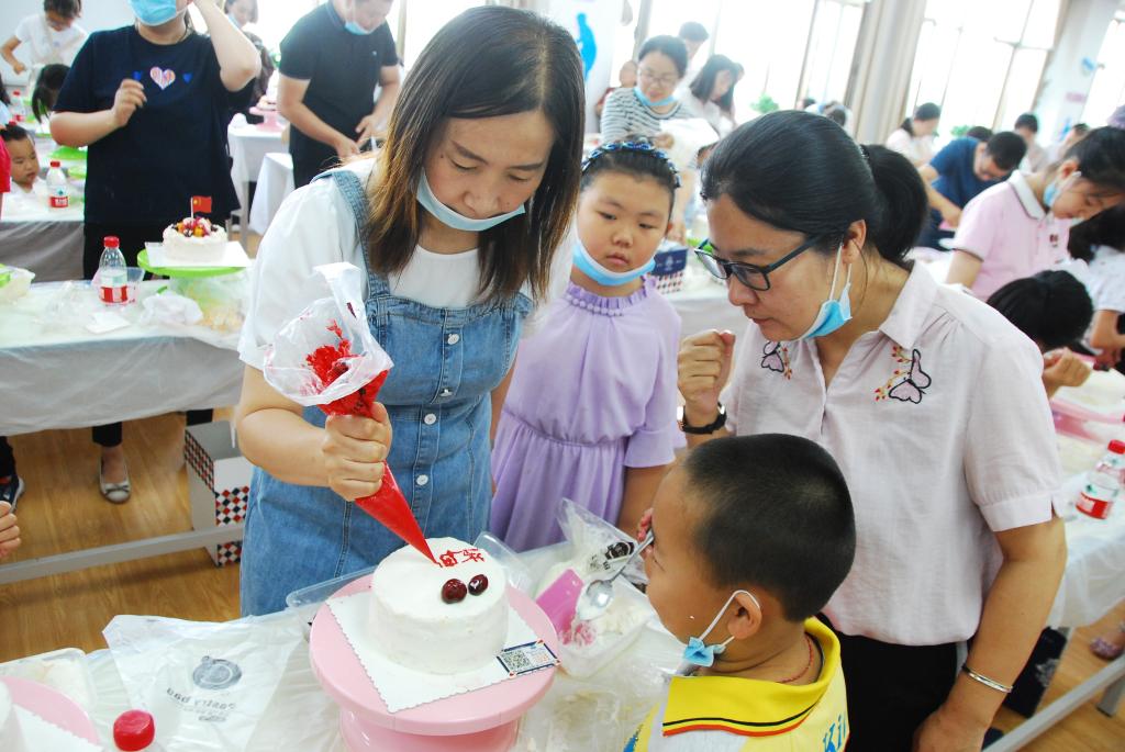 高艳红老师说“在建党100周年之际,举办这次烘焙活动非常有意义,既让我们学习了蛋糕制作知识,又让我们和孩子们用心、用情、用行动表达了对党对祖国的真挚热爱和深情祝福,也为孩子们上了一堂别样而生动的爱党爱国教育课!”