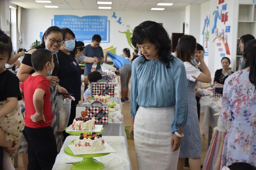 张爱萍观看了各个家庭制作的蛋糕,关切询问了大家的工作、生活情况。她说,今天我们以做蛋糕的方式迎接党的生日,重温党的光辉历史和伟大成就,展现我们现在的美好生活,表达对党对祖国的美好祝福。希望大家继续践行好胡杨精神,发扬“三牛”精神,不忘初心,牢记使命,用勤劳双手继续“烘焙”美好生活,为学校发展贡献更大智慧和力量,以优异成绩向中国共产党成立100周年献礼。