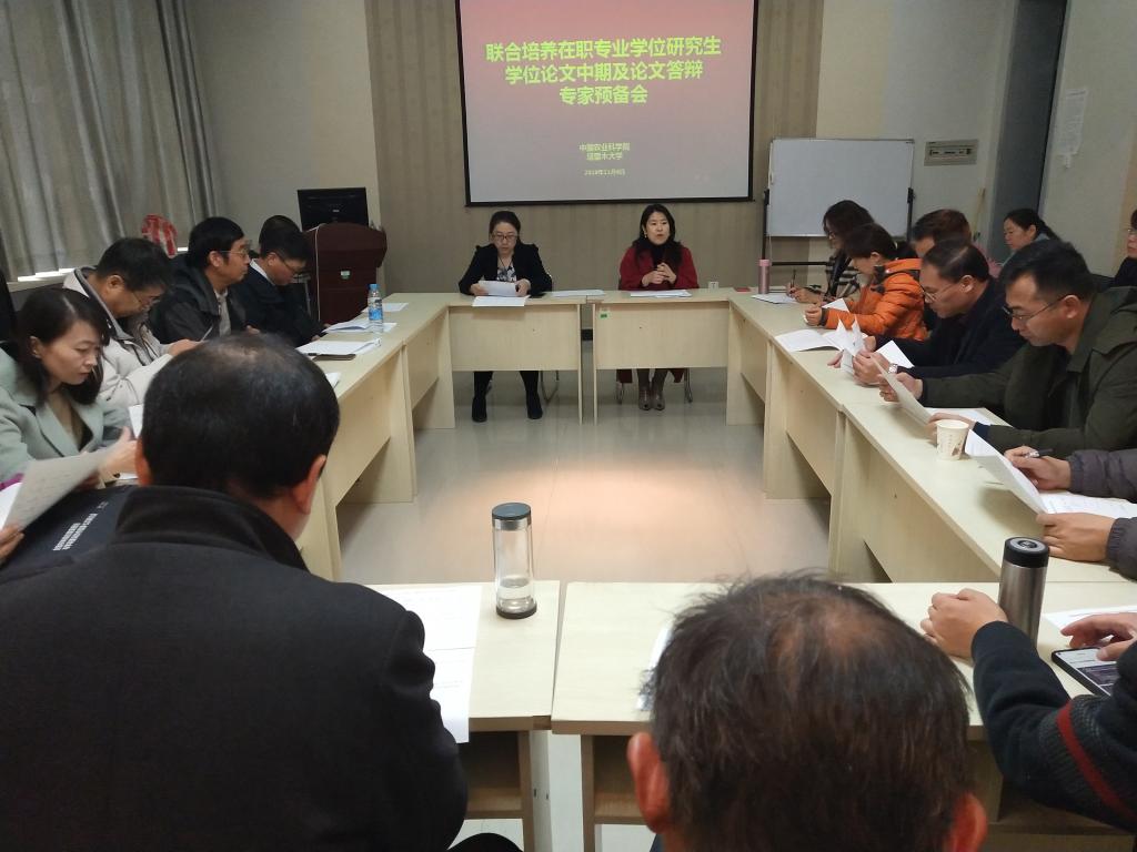 11月6日上午,中国农业科学院——beat365中文登录入口联合培养在职专业学位研究生学位论文答辩与中期检查报告会在1号楼107、309、312、410室举行。本次报告会邀请来自中国农业科学院、beat365中文登录入口的21名教授担任评审专家,中国农业科学院研究员杨从科、任爱胜、陈刚、庞朝友分别担任答辩委员会主席,中国农科院研究生院处长杨建玲对答辩全过程进行了督导。