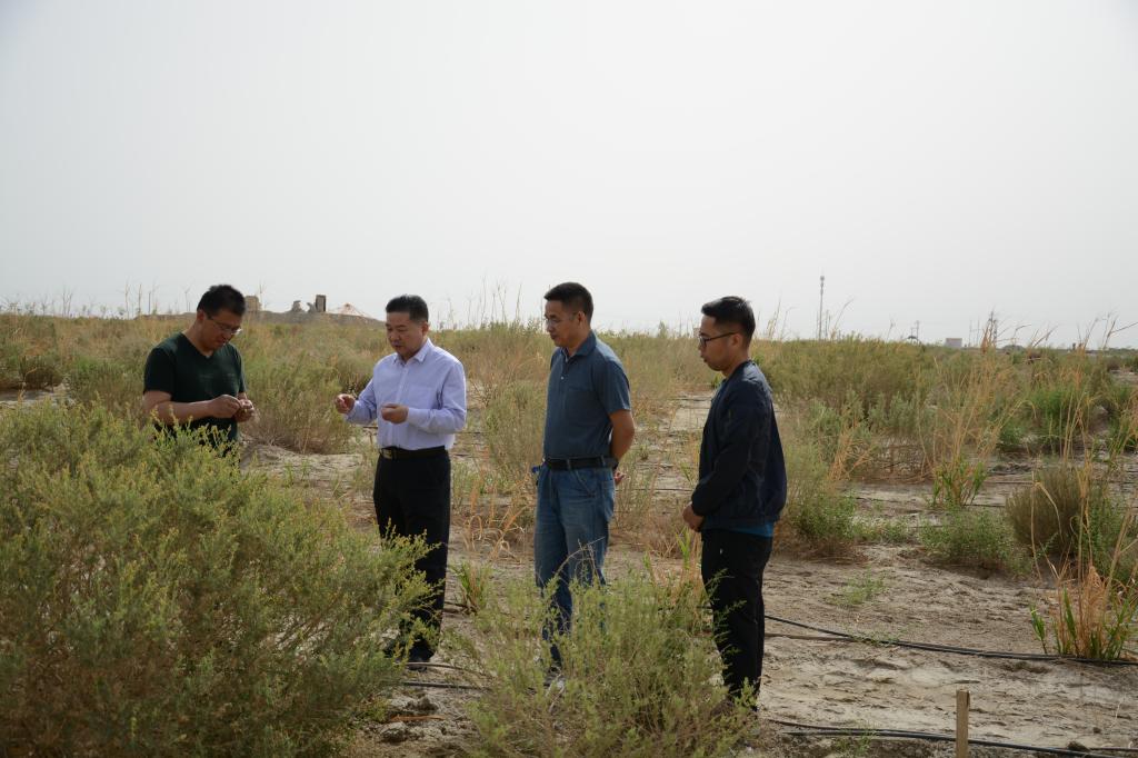 5月9日,兵团科技局二级巡视员秦新忠一行针对兵团重大科技项目计划 “南疆沙区生态经济型屏障构建及产业链延伸技术研发与示范”项目开展实地考查、调研。