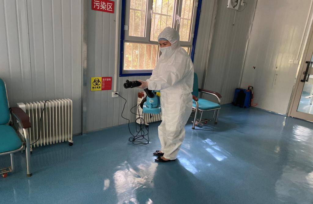 校医院医护人员在接到通知后积极响应号召,坚守在工作岗位。预分检门诊医护人员每天都会提前到岗,穿戴好防护装备,做好预检分诊工作。预检分诊看似简单,实则非常辛苦,每天上班之前和下班之后都要对预分检门诊进行彻底消杀毒,大到地面,小到水龙头,每一件物品都不能放过。