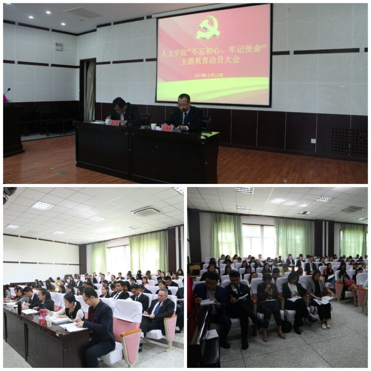9月18日下午,人文院在行政楼B座117召开“不忘初心、牢记使命”主题教育动员大会。学校主题教育领导小组办公室第二指导组副组长陈甲武一行到会指导。学院院长肖涛,党委副书记雷长柱,副院长秀梅,全体师生党员及民主党派代表共85人参加会议。会议由学院党委委员汪俊主持。