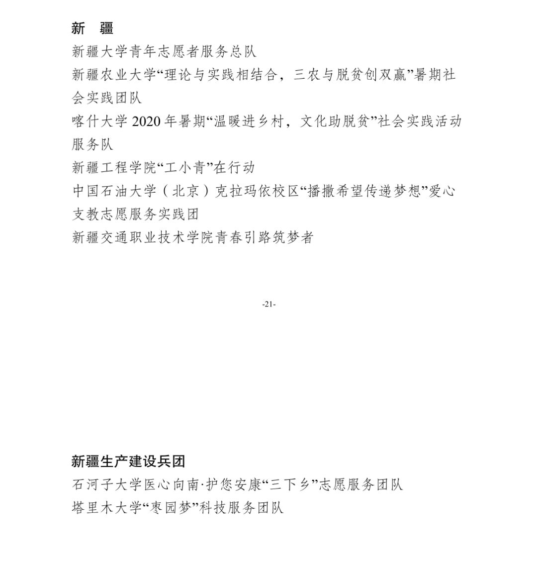 经基层推报、省级团委审核推荐、组织评议等环节,最终遴选出北京大学团委等300个优秀单位、清华大学“至地有声”地摊经济调研支队等400个优秀实践团队、中国人民大学杨子强等400名优秀个人。