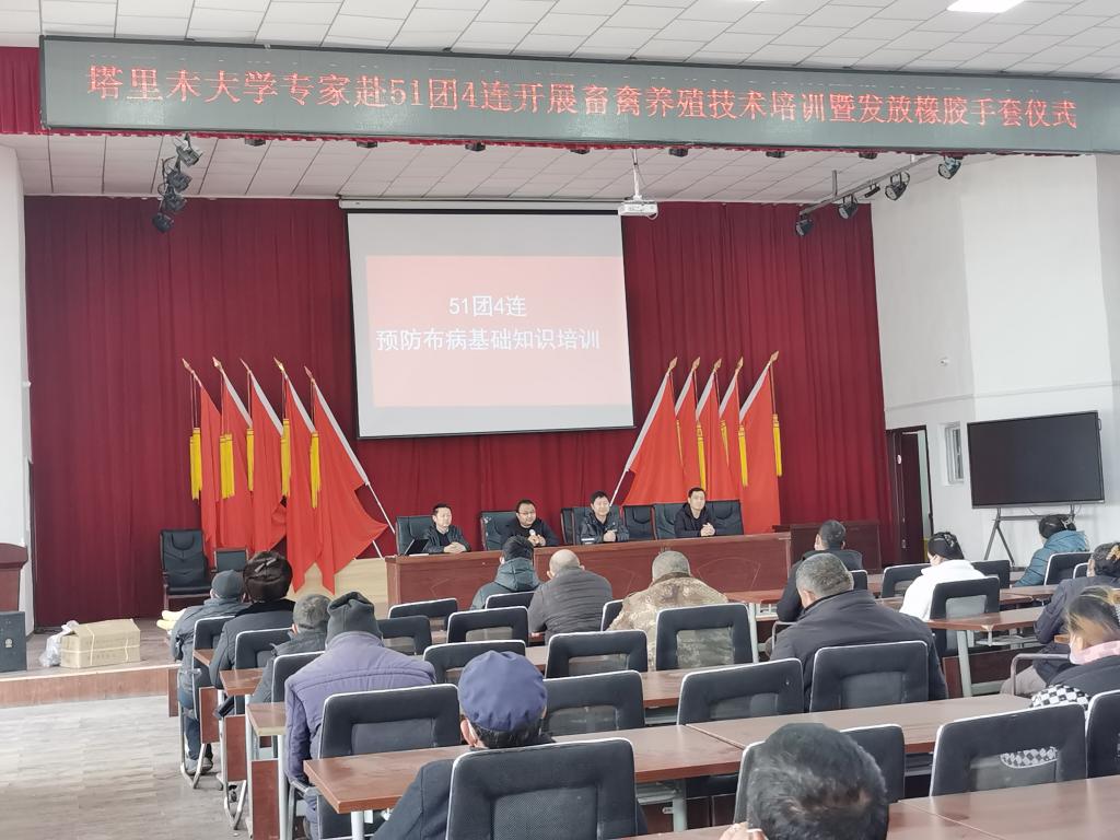 为提高连队群众家畜养殖水平,提高动物疫病防控意识,掌握人畜共患传染病预防控制基本的防治知识,不断提高群众的个人防护意识和能力,保护人民群众身体健康,促进畜牧业健康发展。1月25日下午,beat365动物科学与技术学院胡建军教授、郑毛亮副教授、方雷副教授,生命科学与技术学院王智超教授组成的beat365中文登录入口畜牧兽医科技特派员服务团队赴51团4连开展了家畜养殖、疫病防控基础知识培训工作,全连400余名职工群众参加了培训。