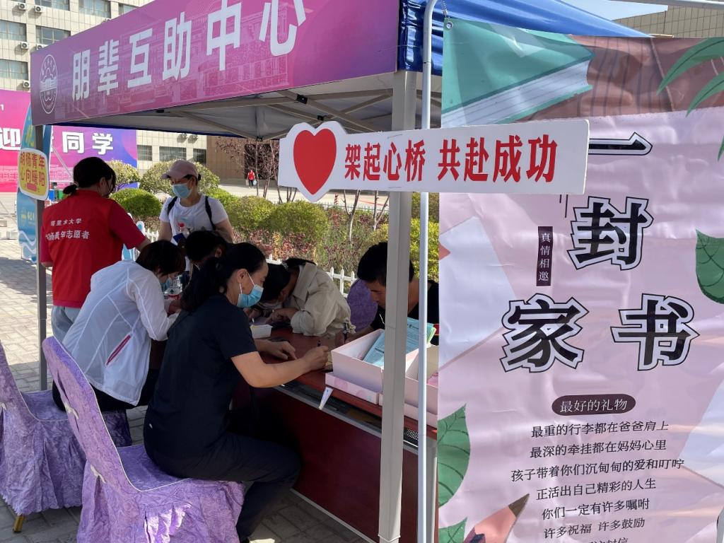 胡杨青年朋辈互助中心在beat365中文登录入口胡杨干部培训中心迎新点举办了“一封家书”活动。父母为孩子写下祝福和鼓励的话语,孩子带着父母的爱和叮咛走向更广阔的天地。