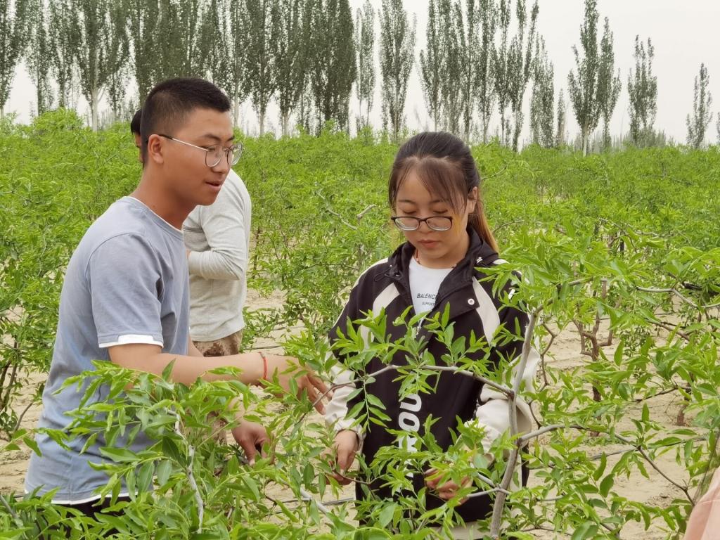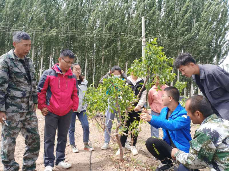 春季是红枣抹芽、摘心的关键时期,也是树体管理的关键时期。为了指导职工农户做好春季红枣的树体管理,科技服务团队的研究生一对一指导示范。
