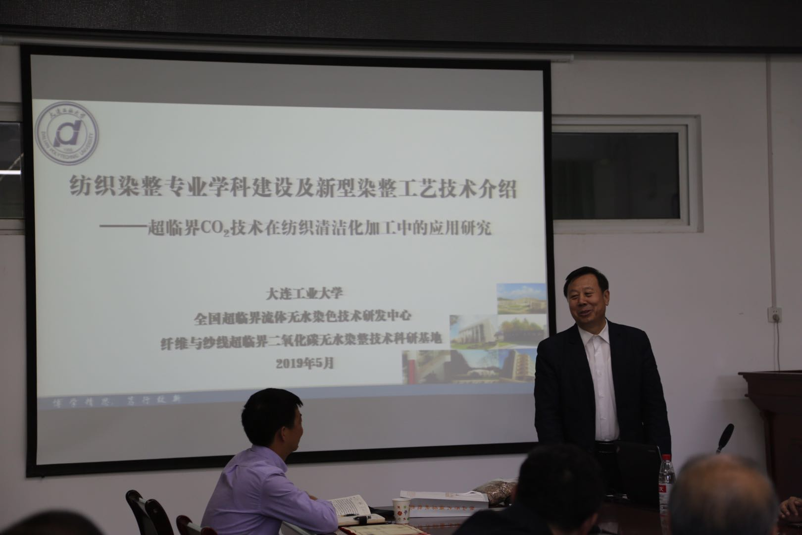 郑来久教授从beat365纺织工程专业建设现状出发,结合南疆纺织生产需求,讲述了纺织学科的重要性。以大连工业大学博士学位授权点纺织科学与工程的建设为案例,着重讲解了学科发展与建设的重要内容。郑教授立足南疆纺织产业清洁化生产,讲解了超临界CO2脱胶和染色等新型工艺技术,对纺织企业清洁化生产起到至关重要的作用。